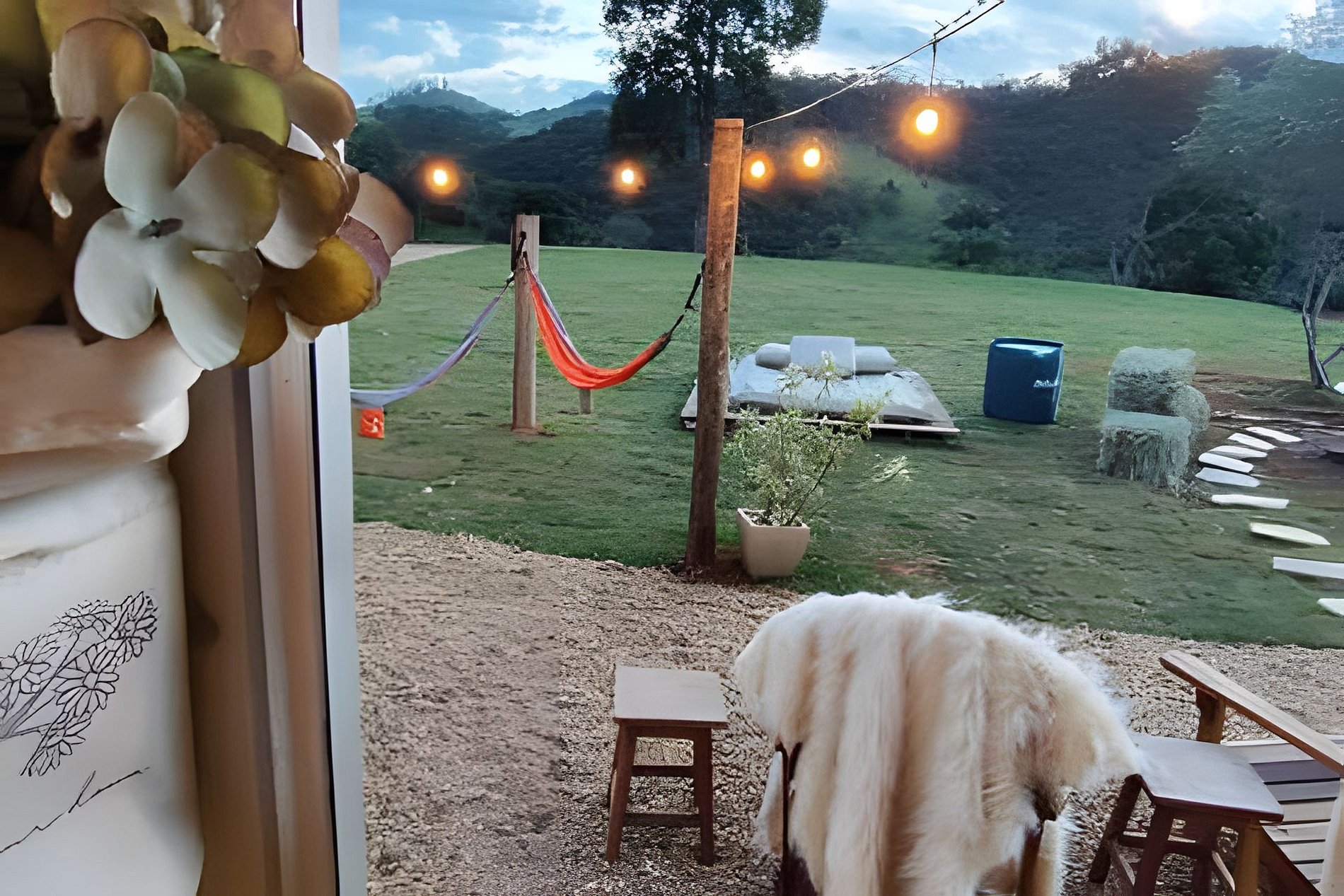 Aqui o tempo desacelera. Você acorda com o canto dos pássaros, respira o ar puro da montanha e se encanta com uma vista de tirar o fôlego. No quintal, você encontra :