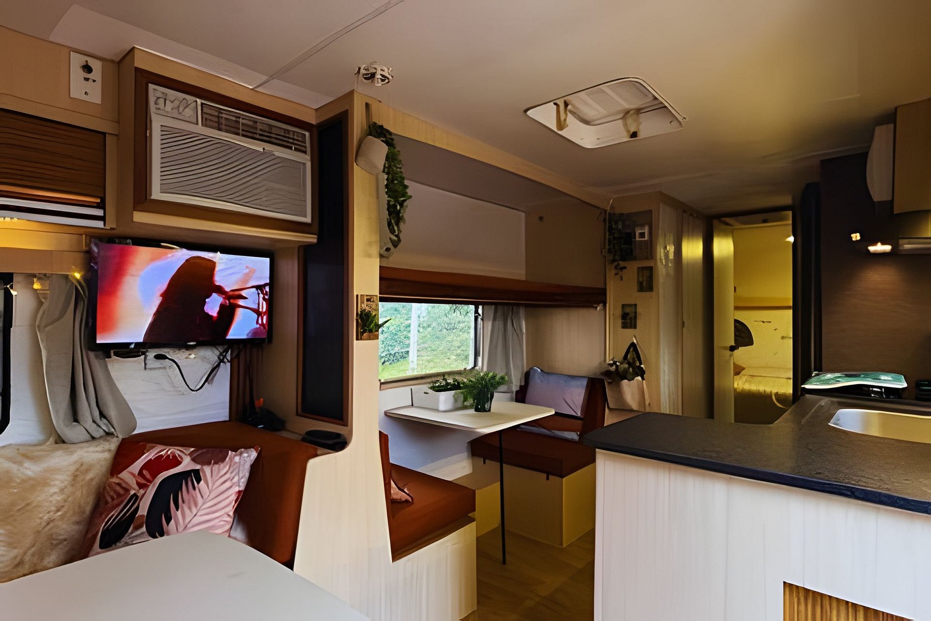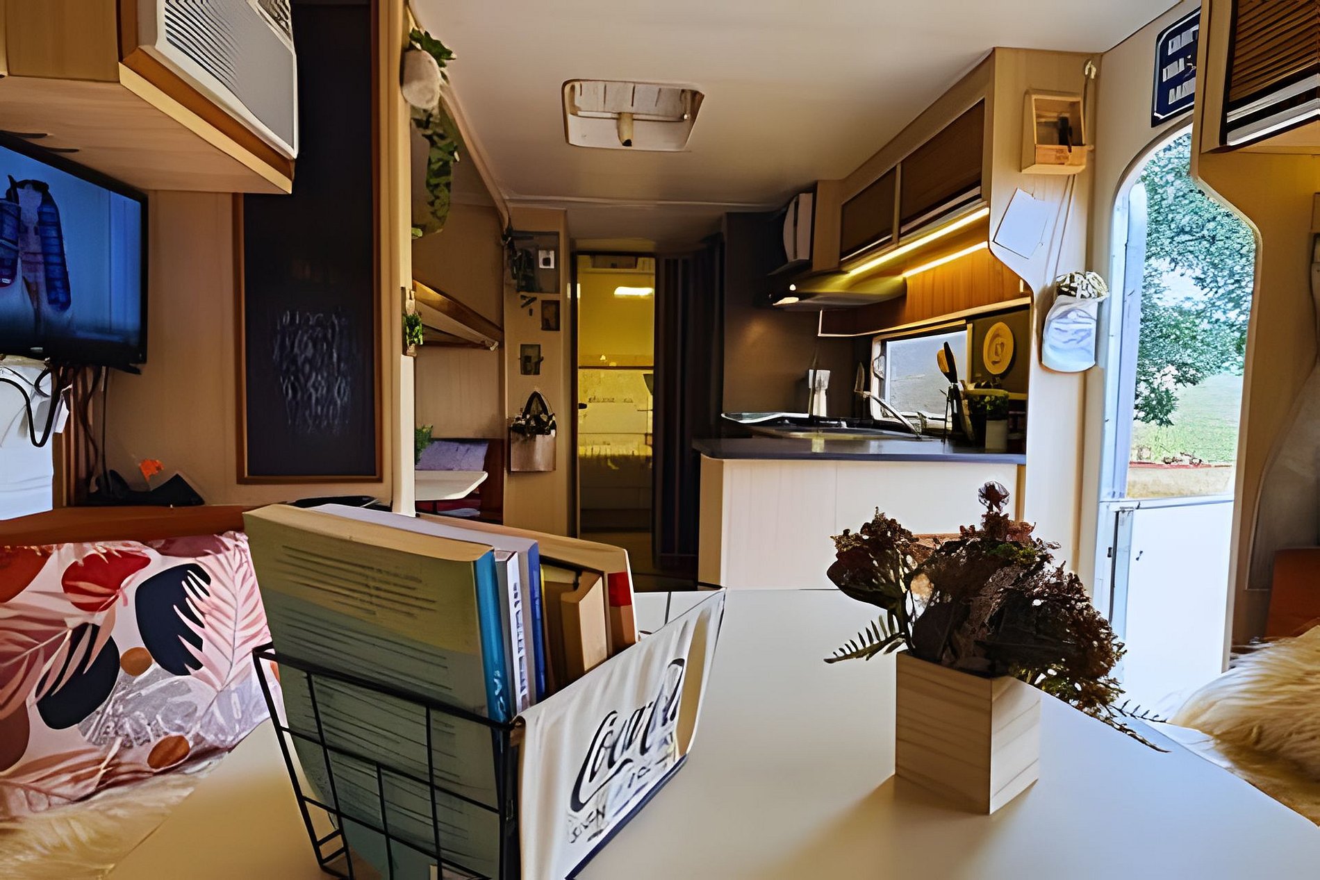 O Trailer faz parte do projeto de uma família que buscava se aproximar da natureza e seus ciclos e assim iniciaram o plantio de oliveiras para a produção de azeite e depois o café. Assim, você poderá caminhar pela propriedade e conhecer nossa plantação de café e também visitar o olival que fica na propriedade ao lado. Ao se hospedar aqui, indicaremos uma série de sugestões de passeios para conhecer o turismo rural de minas: almoço com comida local, alambique, fábrica de queijo, fábrica de doce de leite, dentre outros espaços. Para quem gosta de caminhar e de bike é possível fazer trilhas nas estradas ao redor do sítio. Contudo, é bom preparar a perna (é montanha, né!). O Trailer acomoda 2 pessoas com conforto. Ele tem um quarto de casal com Smart TV e ar condicionado. Um banheiro. Uma sala de jantar com TV e ar condicionado, uma saleta, cozinha completa (fogão, forno, AirFryer, geladeira e microondas).