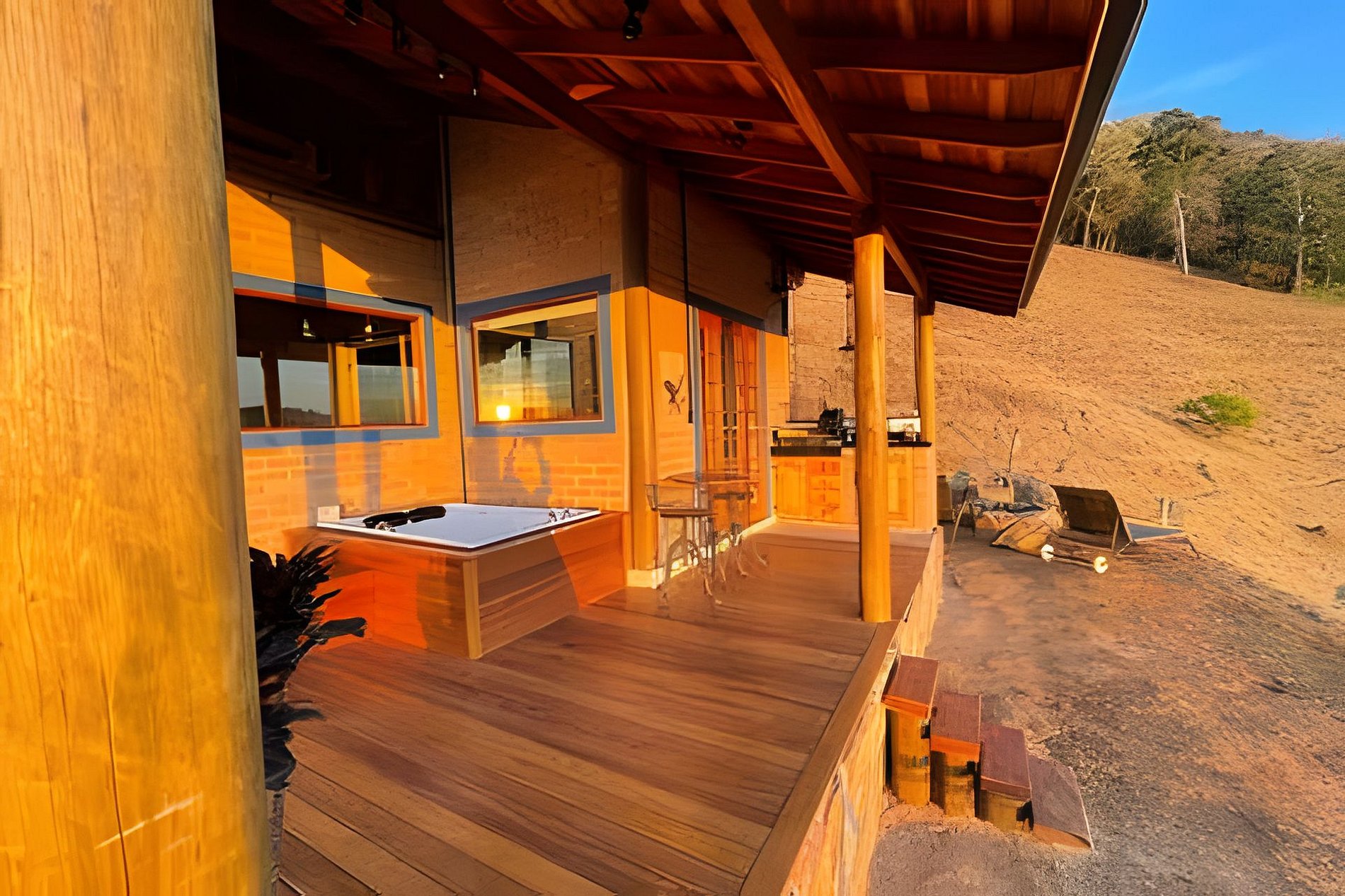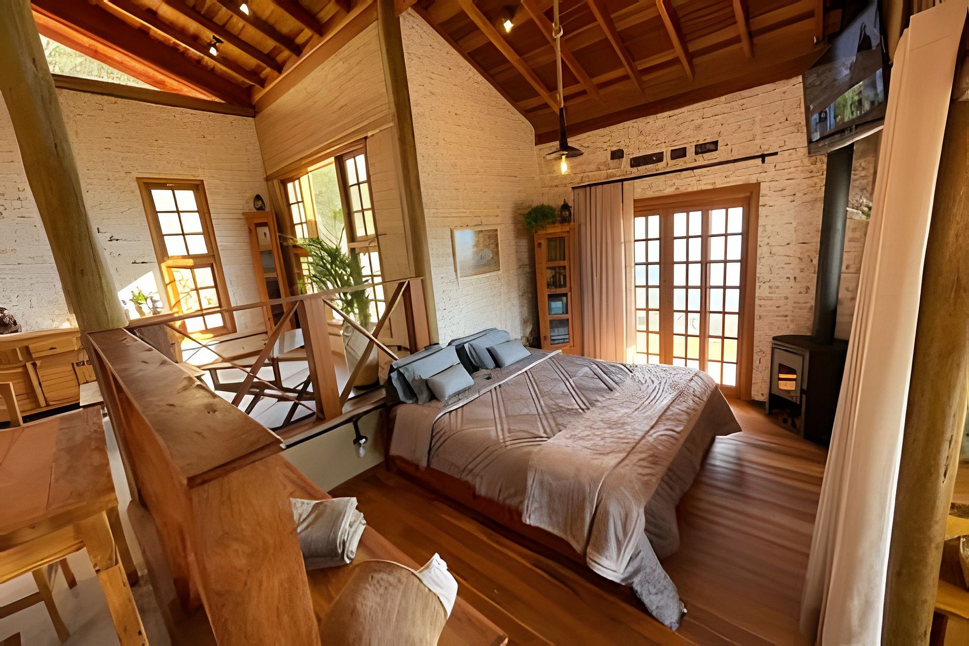 COMODIDADES: - lareira - fogueira - hidromassagem com cromoterapia - ducha com hidromassagem vertical - redário - parrilla uruguaia - adega - cama King Size com colchão Emma, lençóis acetinados e toalhas gigantes - Wi fi - Netflix, Disney e Amazon prime ( apesar que a natureza é bem melhor)