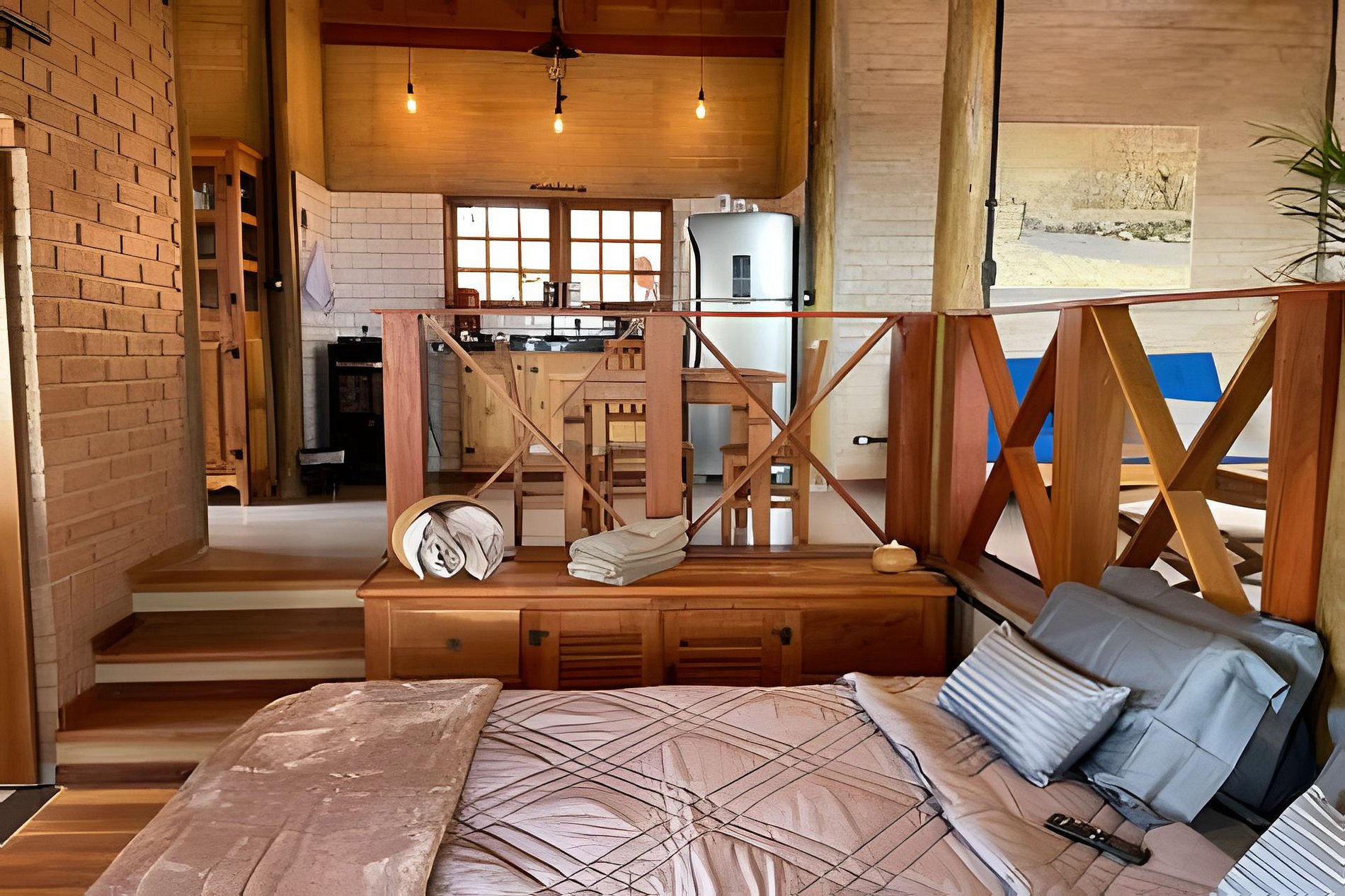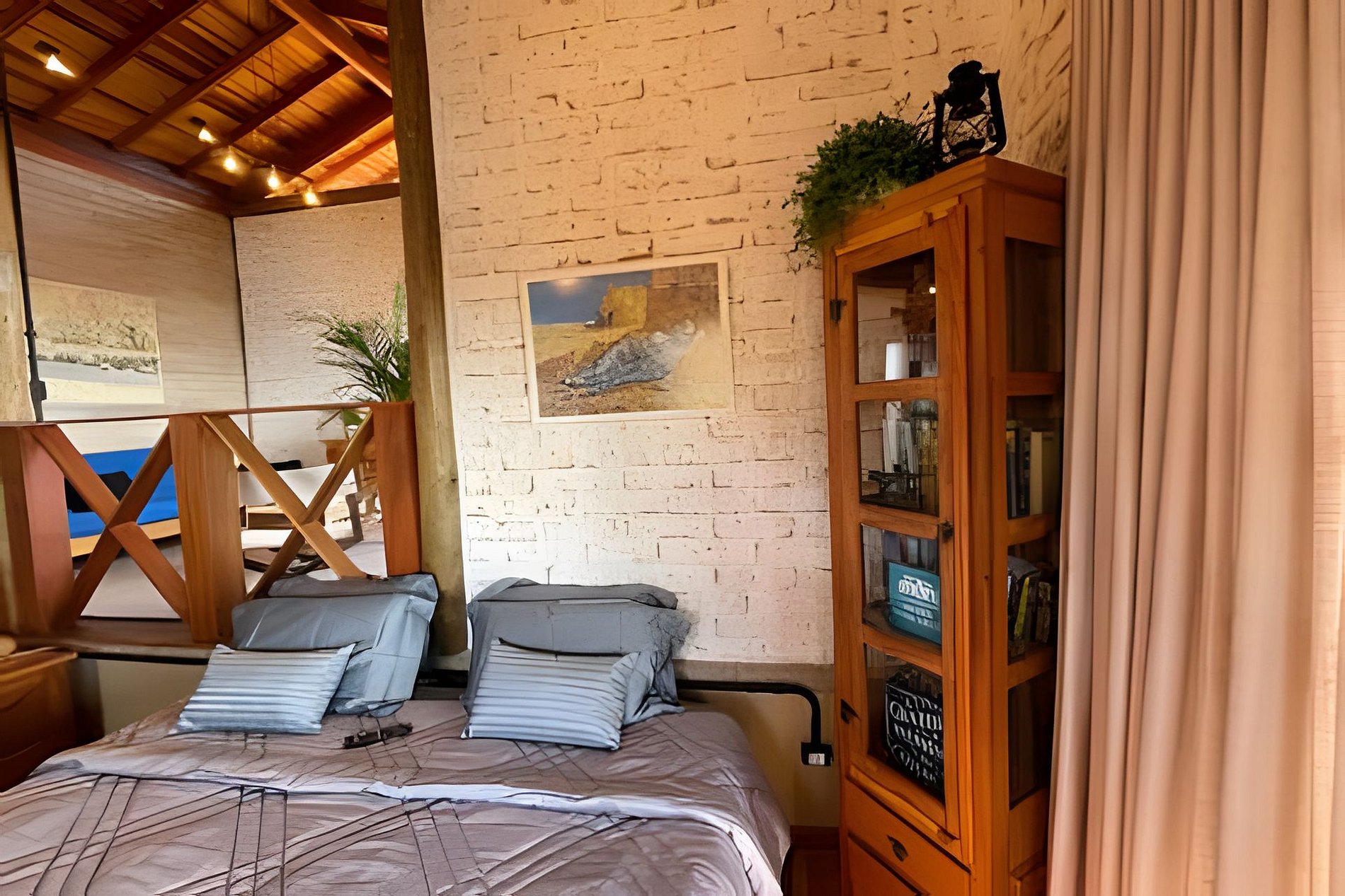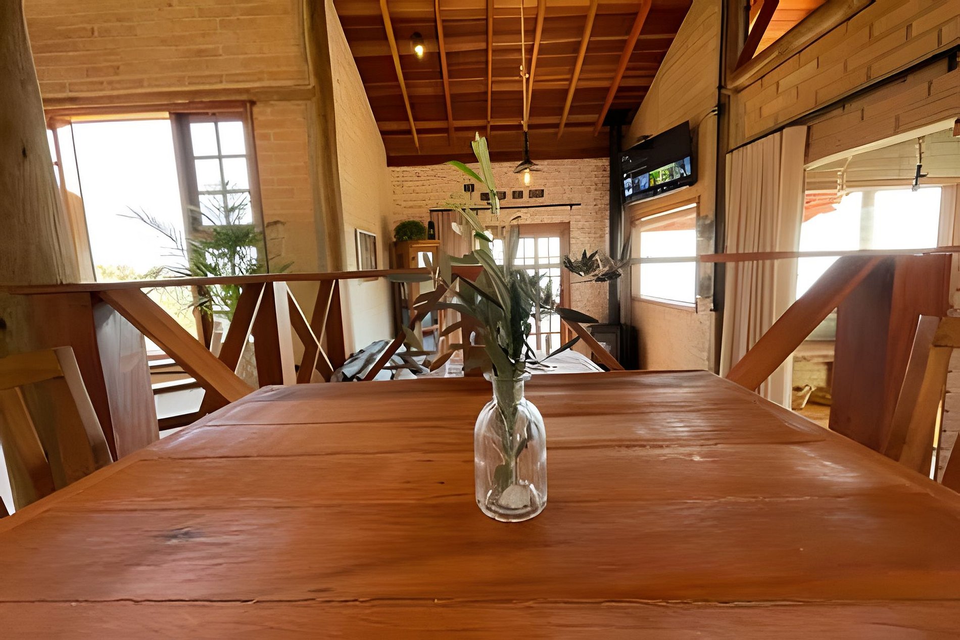 O chalé foi construído por uma família que buscava se aproximar da natureza e seus ciclos e assim iniciaram o plantio de oliveiras para a produção de azeite. Assim, você poderá caminhar pela propriedade e conhecer os olivais do Sítio Santa Clara. Ao se hospedar aqui, indicaremos uma série de sugestões de passeios para conhecer o turismo rural de minas: almoço com comida local, visita a alambique, plantação de morangos orgânicos, fábrica de queijo, fábrica de doce de leite, dentre outros espaços. Para quem gosta de caminhar e de bike é possível fazer trilhas nas estradas ao redor do sítio. Contudo, é bom preparar a perna (é montanha, né!). A noite é possível desfrutar de um redário ao lado da fogueira com um céu repleto de estrelas. E para os que gostam de acordar cedo, é uma oportunidade de acompanhar o nascer do sul acima das nuvens. Uma experiência única. O chalé comporta até 4 pessoas. Possui uma cama King Size no quarto e um sofá cama de casal na sala. Os espaços são integrados (formato estúdio).